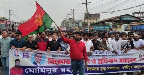 গাজীপুর মহানগর ছাত্রদলের সিনিয়র যুগ্ম সাধারণ সম্পাদক এস এম মোমিনুর রহমানের নেতৃত্বে বিশাল এক বিক্ষোভ মিছিল আয়োজন করা হয়।