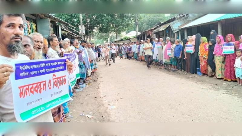 আজ (১৮ আগস্ট) সোমবার বিকেলে উপজেলার চেঁচড়া মোড়ে স্থানীয় এলাকাবাসীর আয়োজনে এ মানববন্ধন অনুষ্ঠিত হয়।