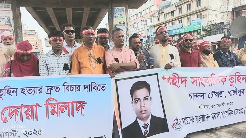বক্তব্যে বিএমএসএফ ট্রাস্টি বোর্ডের চেয়ারম্যান আহমেদ আবু জাফর বলেন, “বাংলাদেশের বিগত সব সরকার সাংবাদিকদের নিয়ে তামাশা করেছে। শহীদ সাংবাদিক তুহিন হ'ত্যাকা'ণ্ড নিয়েও কোনো তামাশা করতে দেওয়া হবে না।”