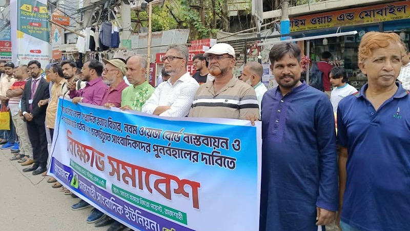 দাবি আদায়ে প্রয়োজনে আগামীতে আরো কঠোর আন্দোলনের হুশিয়ারিও দেওয়া হয়।সাগর-রুনিসহ সকল সাংবাদিক হত্যার বিচার, নবম ওয়েজ বোর্ড বাস্তবায়ন ও দশম ওয়েজ বোর্ড গঠন এবং চাকরিচ্যুত সাংবাদিকদের পুনর্বহালসহ বিভিন্ন দাবিতে শনিবার (১ নভেম্বর) বেলা ১১টায় রাজশাহী নগরীর সাহেব বাজার জিরো পয়েন্টে অনুষ্ঠিত এ মানববন্ধন ও বিক্ষোভ সমাবেশে সাংবাদিক নেতারা এসব কথা বলেন।
