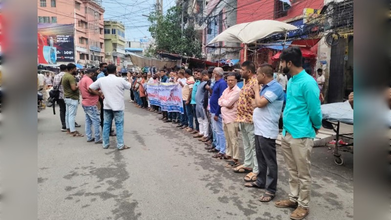 রাজশাহী বরেন্দ্র প্রেসক্লাবের সভাপতি রেজাউল করিমের ওপর ন্যাক্কারজনক ও সশ'স্ত্র হামলার প্রতিবাদে উত্তাল হয়ে উঠেছে রাজশাহী। হামলার ঘটনায় জড়িত চিহ্নিত আসামিদের দ্রুত গ্রেপ্তার ও দৃ'ষ্টান্তমূলক শাস্তির দাবিতে মহানগরীর সাহেববাজার জিরো পয়েন্টে বিশাল মানববন্ধন ও বিক্ষোভ সমাবেশ অনুষ্ঠিত হয়েছে। শনিবার (২৮ মার্চ) সকাল ১১টায় আয়োজিত এই কর্মসূচিতে রাজশাহীর বিভিন্ন সাংবাদিক সংগঠনের নেতাকর্মী ও সাধারণ সংবাদকর্মীরা স্বতঃস্ফূর্তভাবে অংশ নিয়ে সংহতি প্রকাশ করেন।