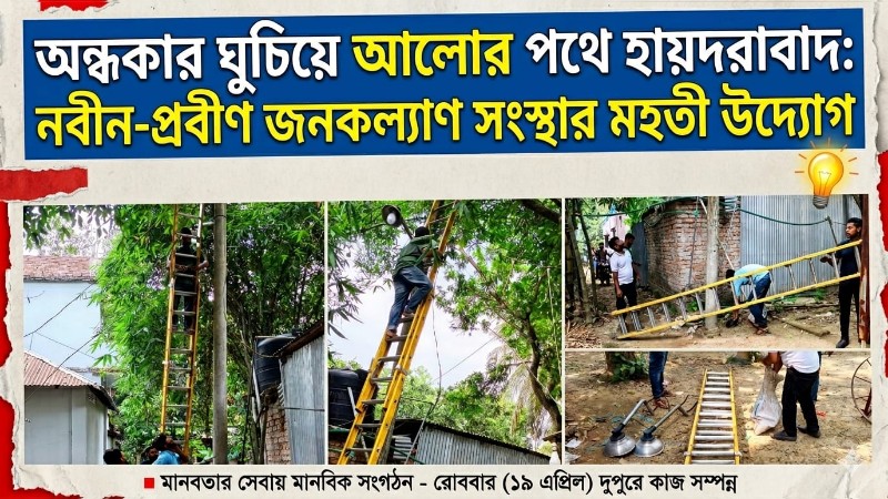 গাজীপুর সিটি কর্পোরেশনের ৩৯ নং ওয়ার্ডের হায়দরাবাদ এলাকায় এক প্রশংসনীয় মানবিক উদ্যোগ গ্রহণ করেছে স্থানীয় স্বেচ্ছাসেবী সংগঠন ‘নবীন-প্রবীণ জনকল্যাণ সংস্থা’। "মানবতার সেবায় মানবিক সংগঠন" স্লোগানকে হৃদয়ে ধারণ করে এলাকার অন্ধকারাচ্ছন্ন রাস্তাগুলোতে সাধারণ মানুষের চলাচল নির্বিঘ্ন ও নিরাপদ করার লক্ষ্যে সংগঠনটি নিজস্ব অর্থায়নে বৈদ্যুতিক সড়ক বাতি স্থাপনের কাজ সম্পন্ন করেছে। রোববার দুপুরে হায়দরাবাদ গ্রামের জামে মসজিদ সংলগ্ন প্রধান সড়ক ও এর আশপাশের গুরুত্বপূর্ণ সংযোগ সড়কগুলোতে এই আধুনিক স্ট্রিট লাইটগুলো লাগানো হয়।