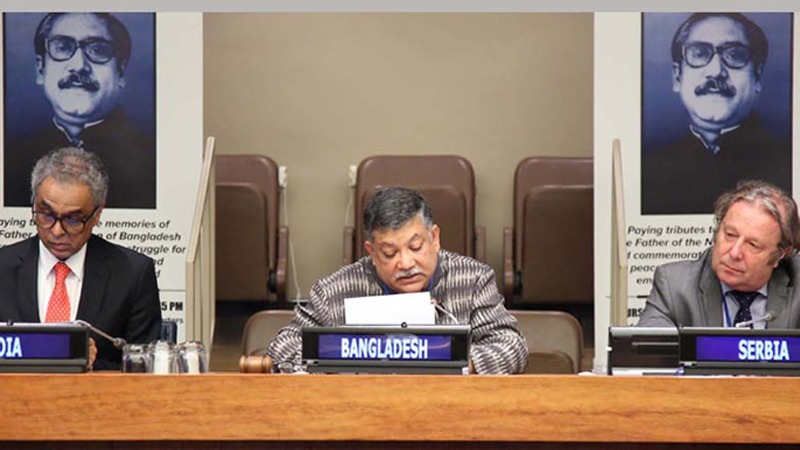 অনলাইন ডেস্ক:জাতিসংঘ সদর দফতরে প্রথমবারের মতো পালিত হয়েছে জাতীয় শোক দিবস। বঙ্গবন্ধু শেখ মুজিবুর রহমানের শাহাদাত বার্ষিকী স্মরণে বাংলাদেশ মিশন নানা কর্মসূচির মাধ্যমে এই আয়োজন করে। বৃহস্পতিবার (১৫ আগস্ট) অনুষ্ঠানে উপস্থিত ছিলেন জাতিসংঘে বিভিন্ন দেশের উচ্চপদস্থ কর্মকর্তা ও প্রতিনিধিরা। আলোচনায় বক্তারা বঙ্গবন্ধুর ব্যক্তিত্ব, সাহসী নেতৃত্ব ও রাজনৈতিক প্রজ্ঞার স্মৃতিচারণ করেন। জাতিসংঘ সদর দফতরে আয়োজিত শোক দিবসের মূল অনুষ্ঠানে স্বাগত ভাষণ দেন জাতিসংঘে নিযুক্ত বাংলাদেশের স্থায়ী প্রতিনিধি ও রাষ্ট্রদূত মাসুদ বিন মোমেন। এসময় দেশি-বিদেশি অতিথিরা জাতির পিতার স্মৃতির প্রতি সম্মান জানিয়ে এক মিনিট নীরবতা পালন করেন। রাষ্ট্রদূত মাসুদ তার বক্তব্যে জনগণের ক্ষমতায়ন, মানবাধিকারের সুরক্ষা, অর্থনৈতিক ও সামাজিক মুক্তি, গণতন্ত্র, শান্তি ও সহবস্থানে বঙ্গবন্ধুর আদর্শ তুলে ধরেন। তিনি আরও বলেন, ‘আমরা আগামী বছর বিশ্বব্যাপী জাতির পিতার জন্মশতবার্ষিকী উদযাপন করতে যাচ্ছি। সে উপলক্ষে জাতিসংঘ সদর দফতরে বিশেষ অনুষ্ঠান আয়োজন করা হবে। পাশাপাশি ২০২১ সালে উদযাপন করা হবে বাংলাদেশের স্বাধীনতার সুবর্ণ জয়ন্তী।’ এসকল অনুষ্ঠানে আন্তর্জাতিক সম্প্রদায়কে স্বতঃস্ফূর্ত অংশগ্রহণ করার আহ্বান জানান স্থায়ী প্রতিনিধি। তিনি জাতীয় শোক দিবস উপলক্ষে প্রধানমন্ত্রী শেখ হাসিনার বাণীর উদ্বৃত্ত করে বলেন, ‘ঘাতক-চক্র বঙ্গবন্ধুকে হত্যা করলেও তার স্বপ্ন ও আদর্শের মৃত্যু ঘটাতে পারেনি। আসুন, আমরা জাতির পিতা হারানোর শোককে শক্তিতে পরিণত করি।’ আলোচনায় আরও বক্তব্য রাখেন জাতিসংঘের সাবেক আন্ডার সেক্রেটারি জেনারেল ও জাতিসংঘে নিযুক্ত বাংলাদেশের সাবেক স্থায়ী প্রতিনিধি রাষ্ট্রদূত আনোয়ারুল করিম চৌধুরী। তিনি তার ভাষণে বঙ্গবন্ধুকে ‘ফ্রেন্ড অব দ্যা ওয়ার্ল্ড’ বা ‘বিশ্ব বন্ধু’ উপাধিতে আখ্যা দেন। রাষ্ট্রদূত আনোয়ারুল করিম চৌধুরী বলেন, ‘বঙ্গবন্ধু প্রদর্শিত পররাষ্ট্রনীতি ‘সকলের সাথে বন্ধুত্ব, কারো সাথে বৈরিতা নয়’ ধারণ করেই বাংলাদেশ বহুপাক্ষিক-তাবাদের অন্যতম প্রবক্তা হিসেবে বিশ্বসভায় ভূমিকা রেখে চলেছে। এছাড়া, ভারতের স্থায়ী প্রতিনিধি সৈয়দ আকবরউদ্দিন বাংলাদেশের সঙ্গে ভারতের গভীর বন্ধুত্ব ও ভ্রাতৃত্বপূর্ণ সম্পর্কের উল্লেখ করে বলেন, ‘১৫ আগস্ট ভারতের স্বাধীনতা দিবস। কিন্তু ১৯৭৫ সালের ১৫ আগস্ট যখন ভারতবাসী তাদের অকৃত্রিম বন্ধু শেখ মুজিবুর রহমানকে সপরিবারে নির্মমভাবে হত্যার ঘটনা জানতে পারে তখন ভারতের স্বাধীনতা দিবসের আনন্দ মুহূর্তেই বিষাদে রূপ নেয়।’ বঙ্গবন্ধুর নীতি ও আদর্শই আজ জাতিসংঘের বিভিন্ন কর্মকাণ্ডে প্রতিফলিত হচ্ছে বলে উল্লেখ করেন তিনি। ভারতের স