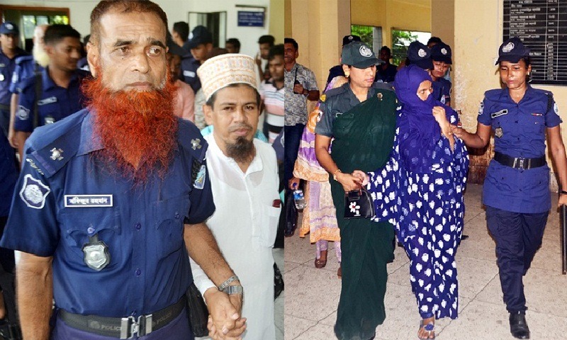 মৃত্যুদণ্ডপ্রাপ্তরা হলেন- অধ্যক্ষ সিরাজউদ দৌলা, নূর উদ্দিন, শাহাদাত হোসেন শামীম, সোনাগাজী পৌরসভার কাউন্সিলর মাকসুদ আলম, সাইফুর রহমান মোহাম্মদ জোবায়ের, জাবেদ হোসেন ওরফে সাখাওয়াত হোসেন জাবেদ, হাফেজ আব্দুল কাদের, আবছার উদ্দিন, কামরুন নাহার মনি, উম্মে সুলতানা ওরফে পপি ওরফে তুহিন ওরফে শম্পা ওরফে চম্পা, আব্দুর রহিম শরীফ, ইফতেখার উদ্দিন রানা, ইমরান হোসেন ওরফে মামুন, মোহাম্মদ শামীম, মাদরাসার গভর্নিং বডির সহ-সভাপতি রুহুল আমীন ও মহিউদ্দিন শাকিল।