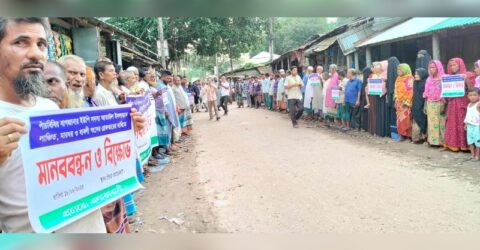 / পাঁচবিবিতে ইউপি সদস্যকে মারধর ও লা’ঞ্ছিত করার প্রতিবাদে মানববন্ধন